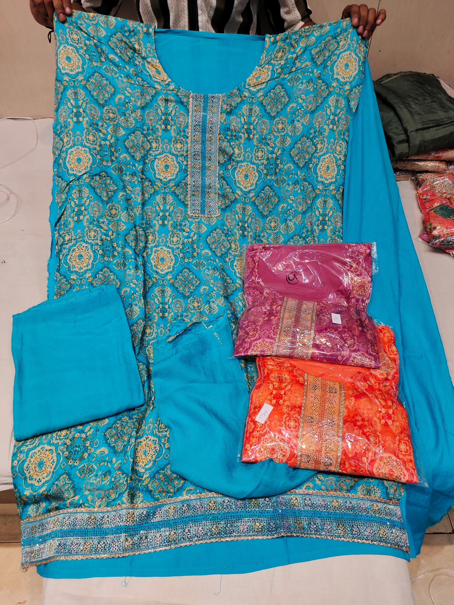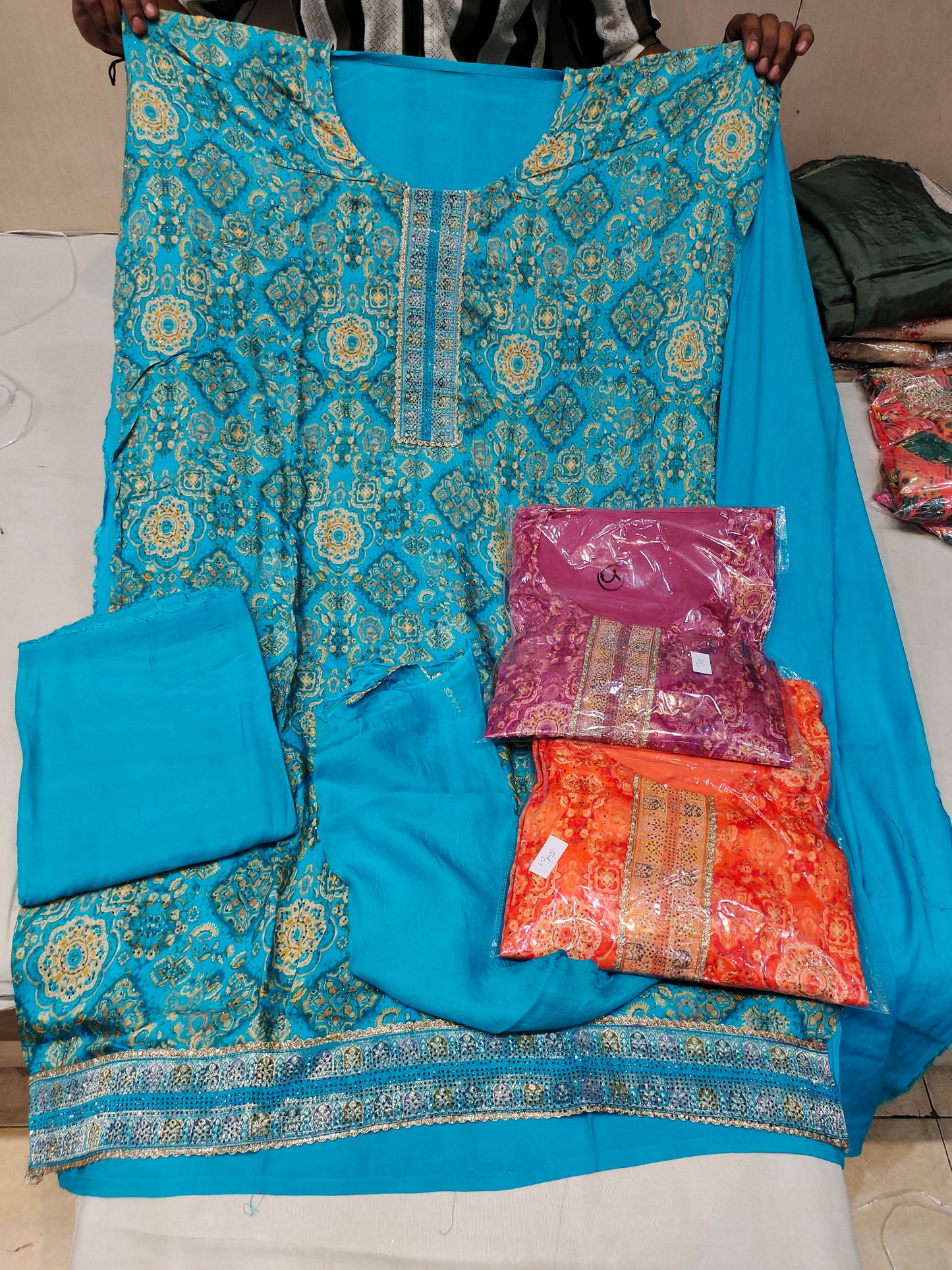 Tremendous blue women's unstitched Salwar suits dress material (free size)