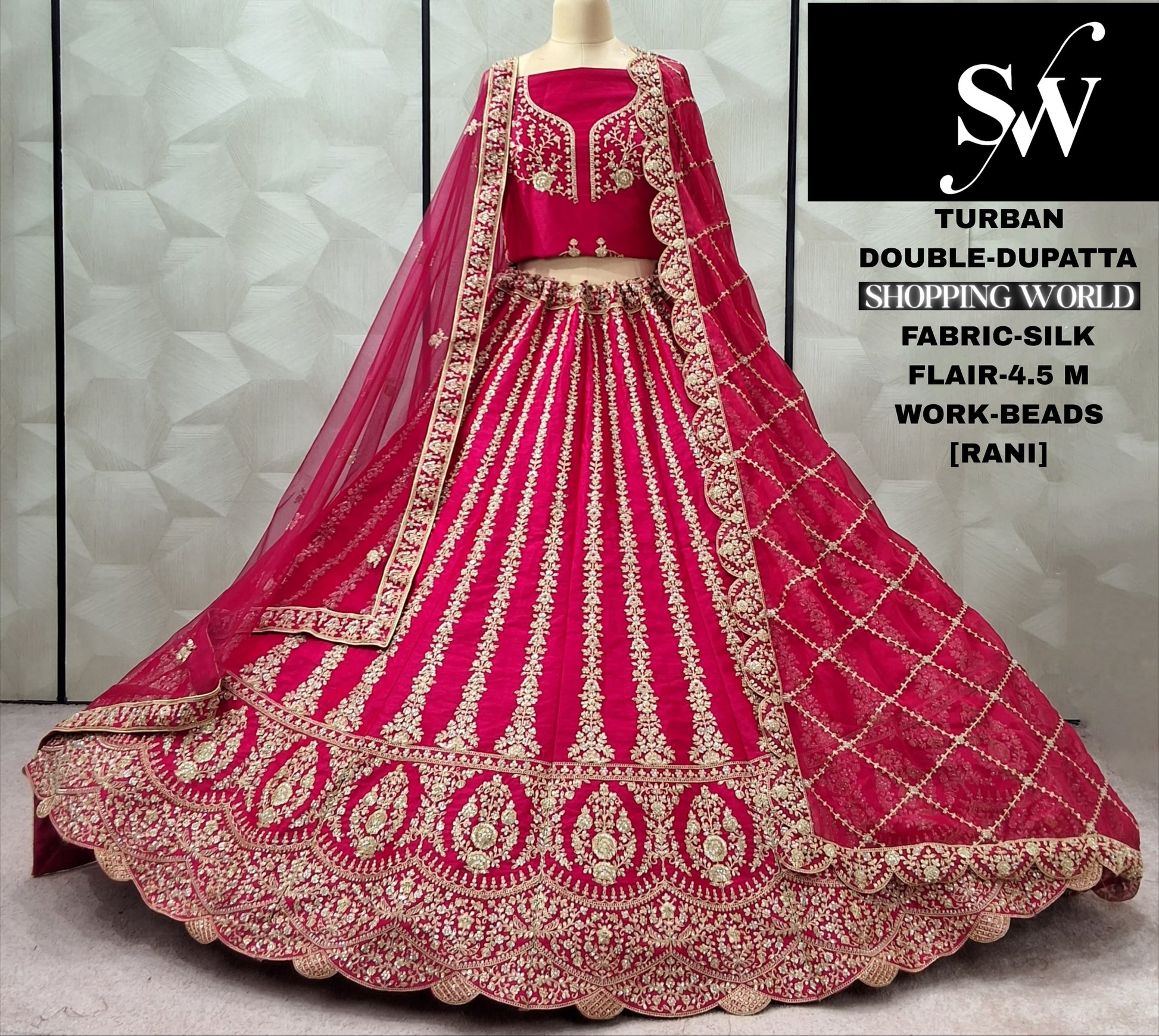 Tremendous Red Silk Double Dupatta Bridal Lehenga