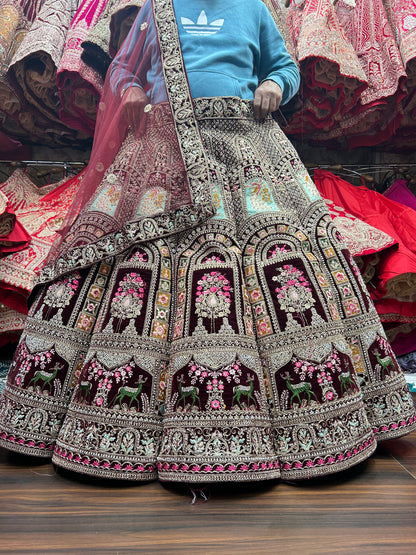 Designer jhumka Maroon bridal lehenga ( happy customer)