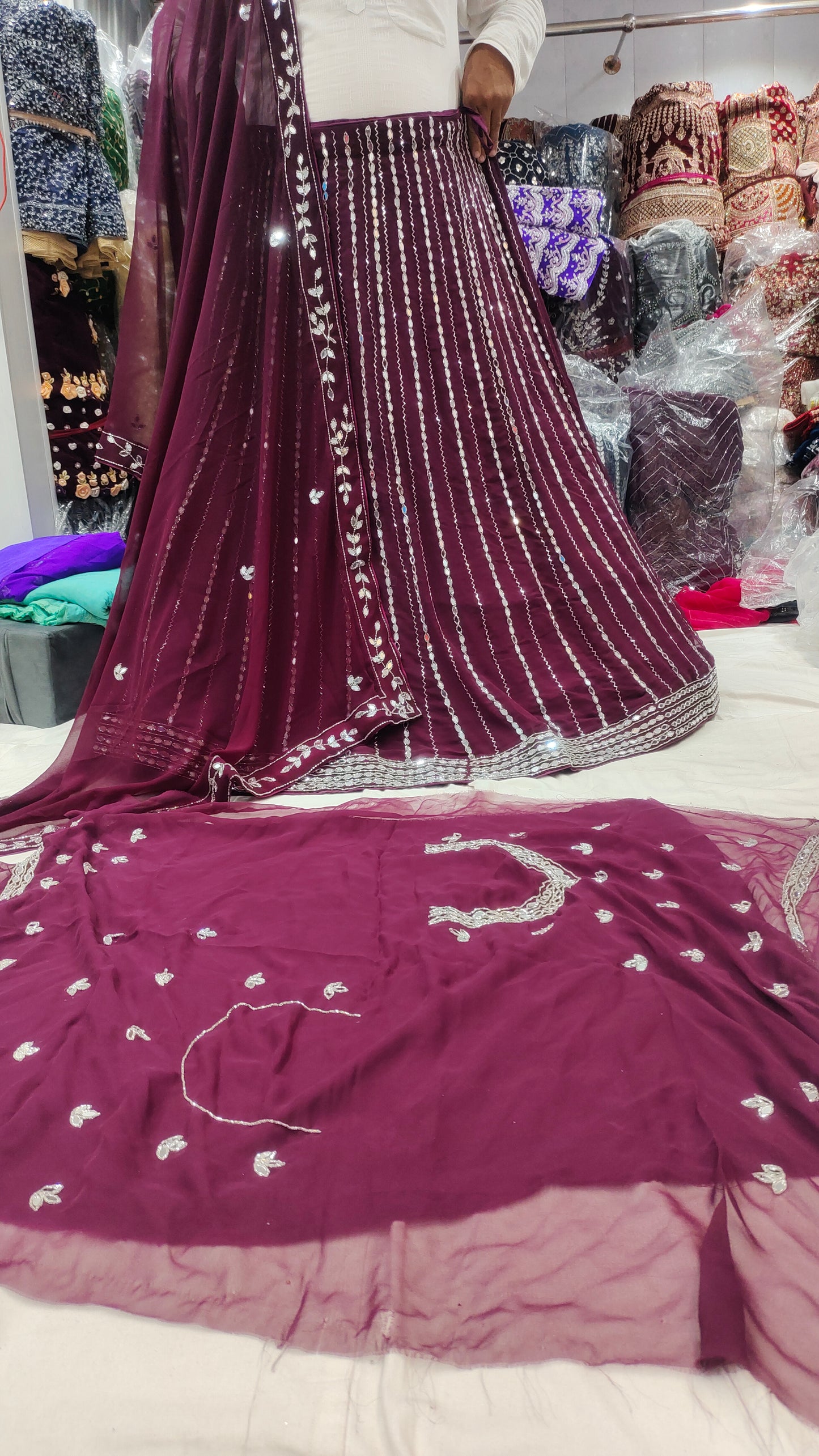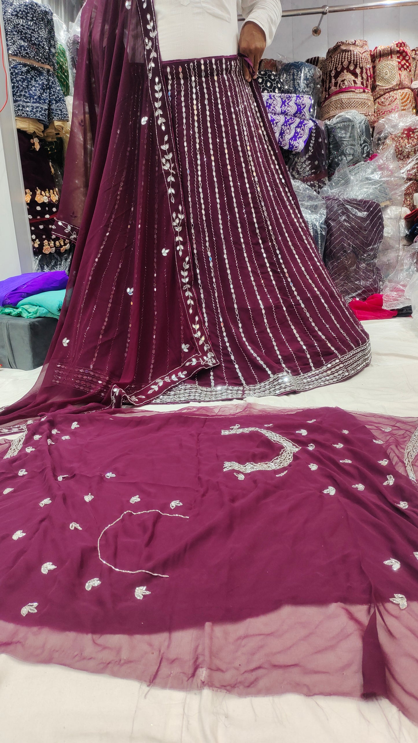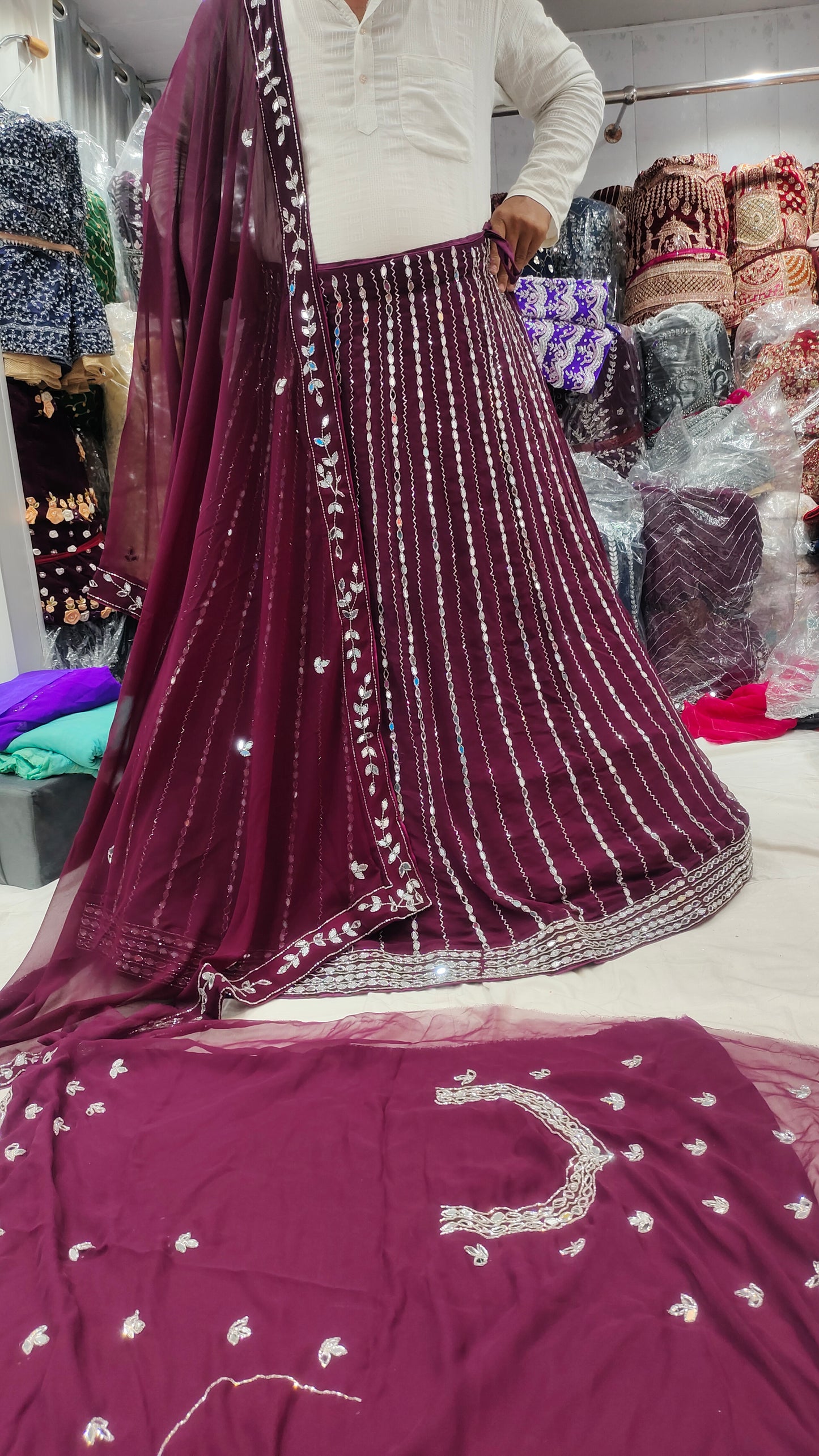 - ₹25,000 – ₹50,000: Premium partywear lehengas with intricate craftsmanship