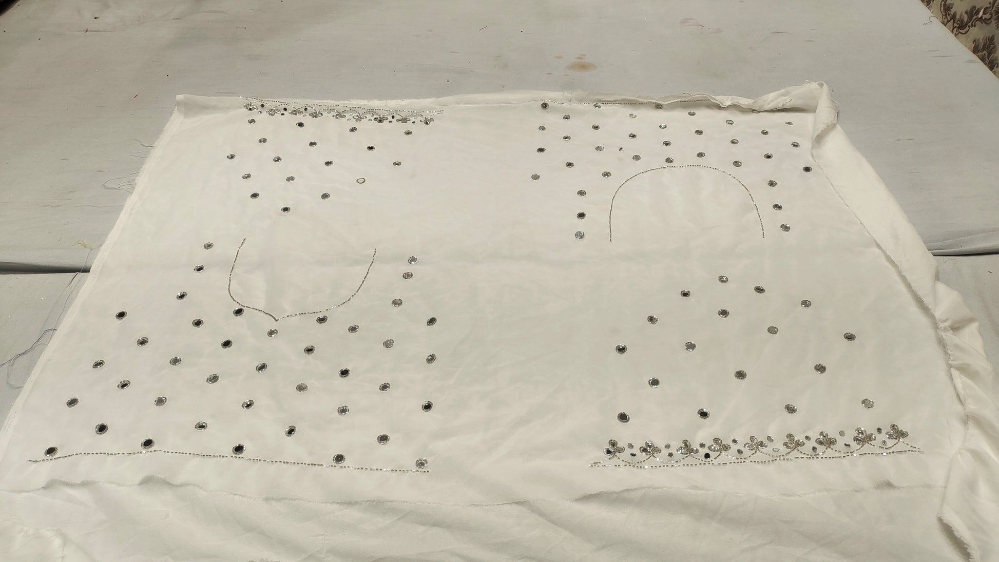 Semi-stitched products come half-stitched. For example, semi-stitched lehengas have a blouse material but the skirt is half-stitched. So, you will have to tailor it to your size.