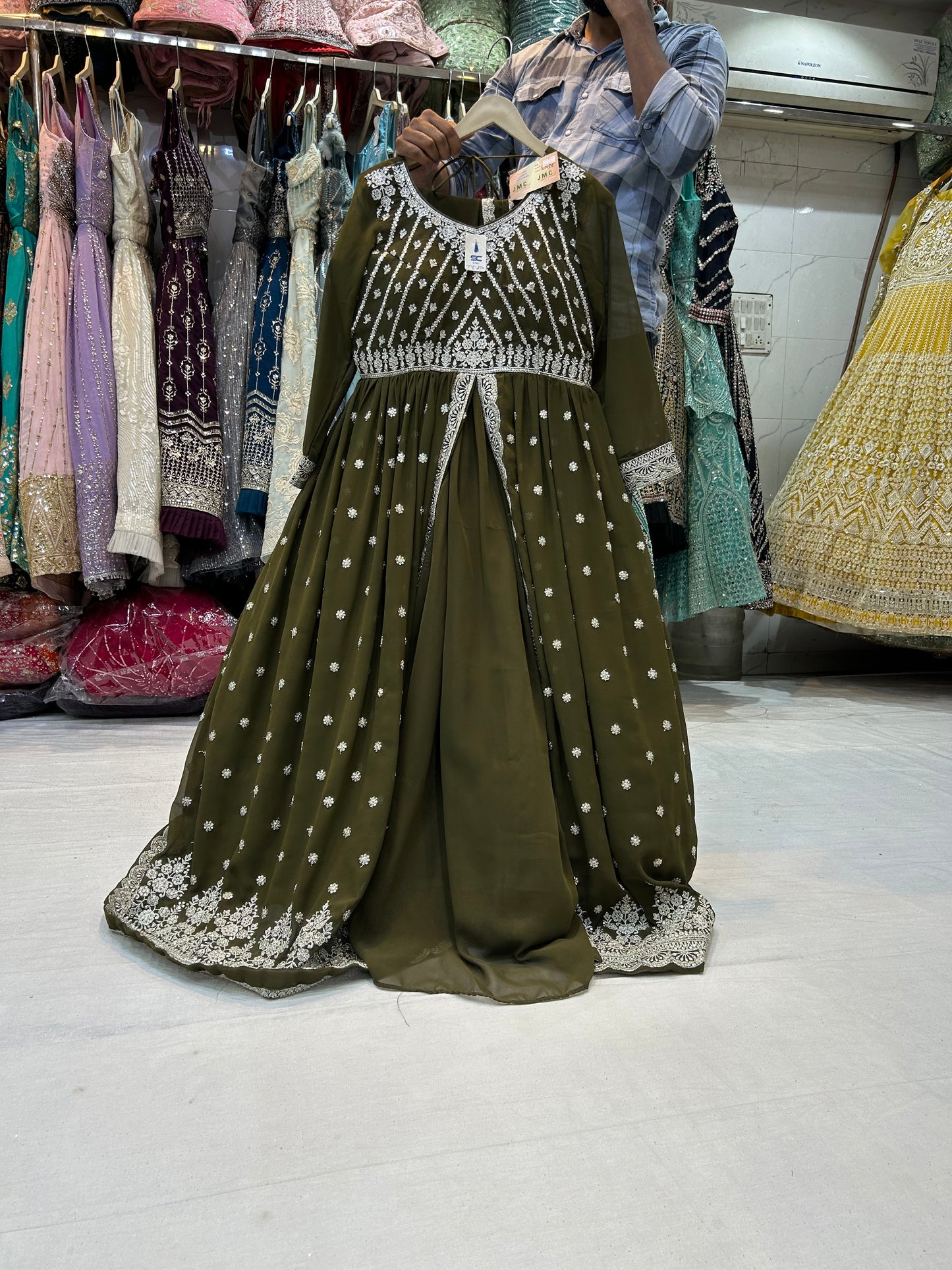 - ₹10,000 – ₹15,000: Glamorous gowns with detailed embroidery and embellishments