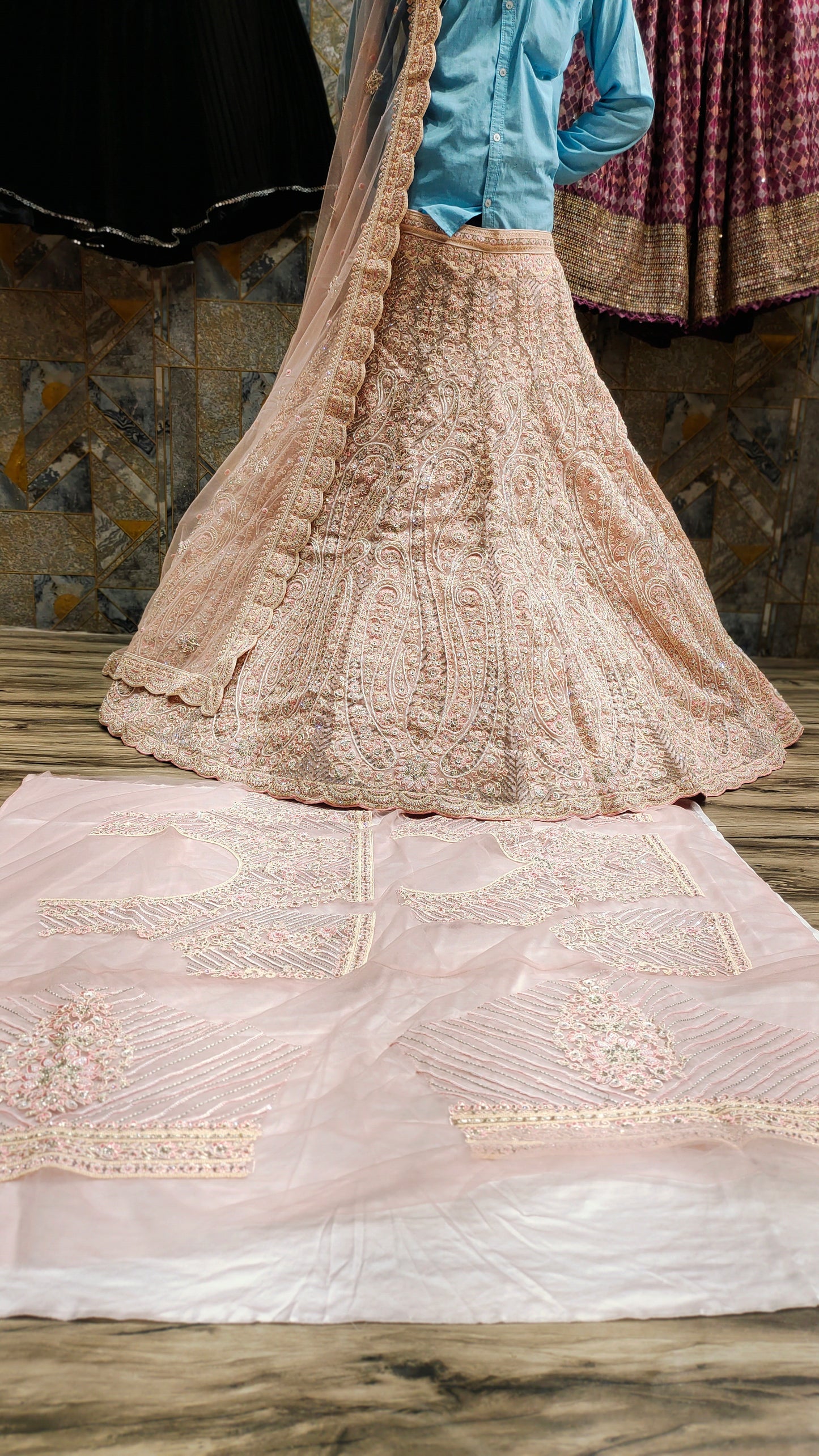 - ₹25,000 – ₹50,000: Premium partywear lehengas with intricate craftsmanship