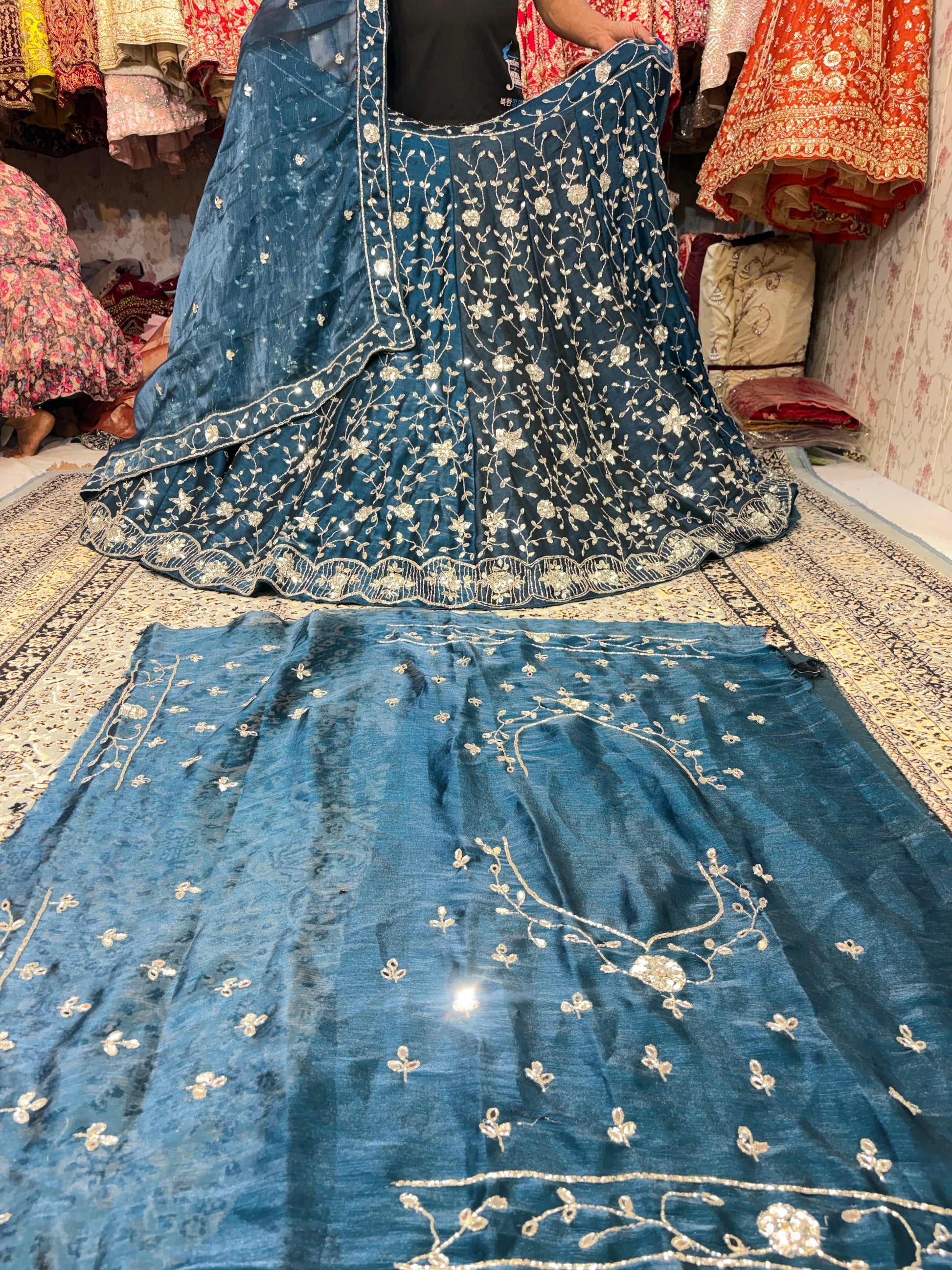 Discover elegance with our Designer Lehenga Collection, perfect for any occasion. These free-size lehengas are thoughtfully designed to accommodate all body types and can be customized to suit your unique style. Crafted to elevate your wardrobe, each lehenga set includes a semi-stitched skirt, unstitched blouse fabric (choli), and a matching chunni (dupatta), making it an ideal choice for weddings, festivals, and special celebrations.