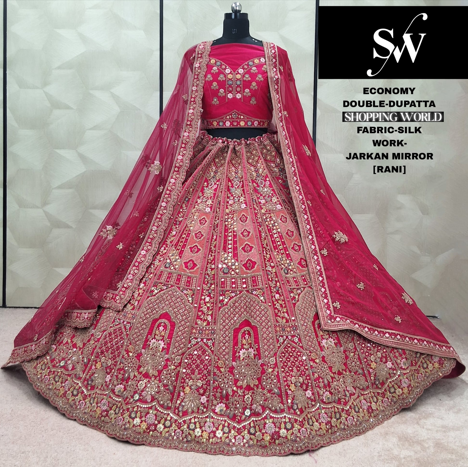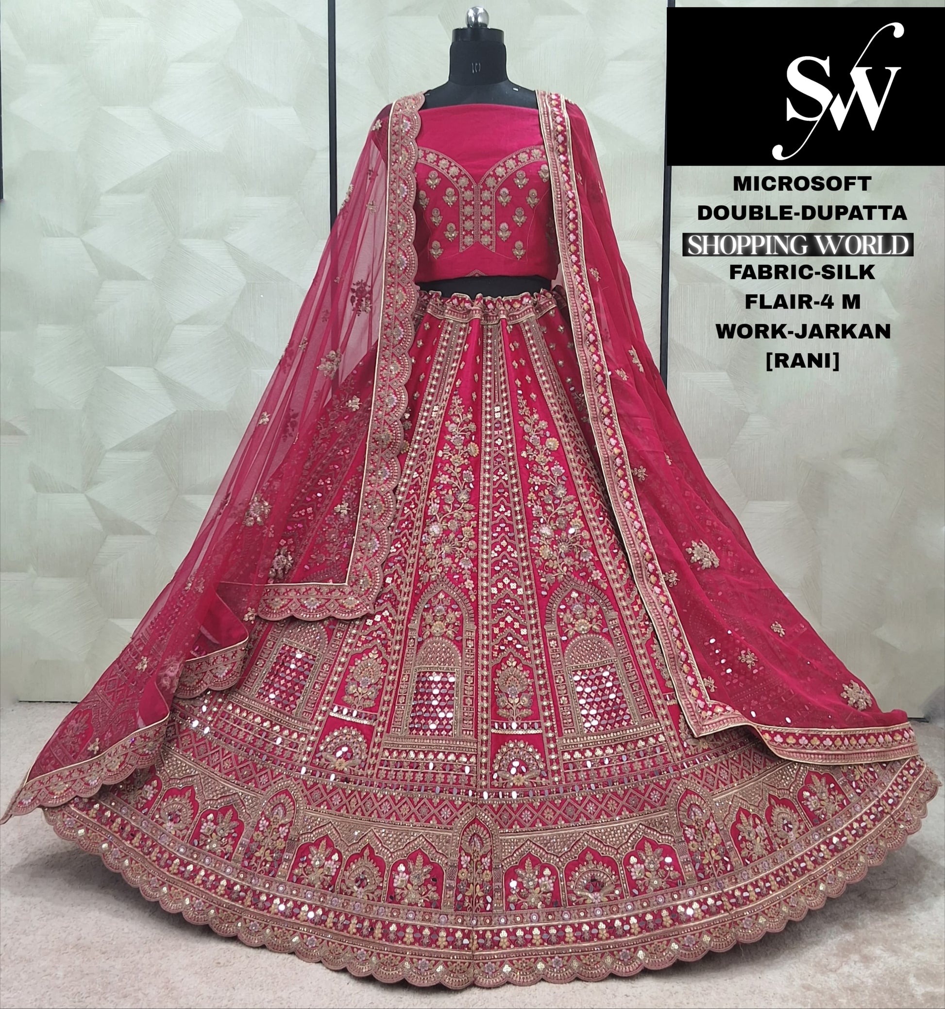 Attractive Red Rani pink Silk Double Duptta Bridal Lehenga