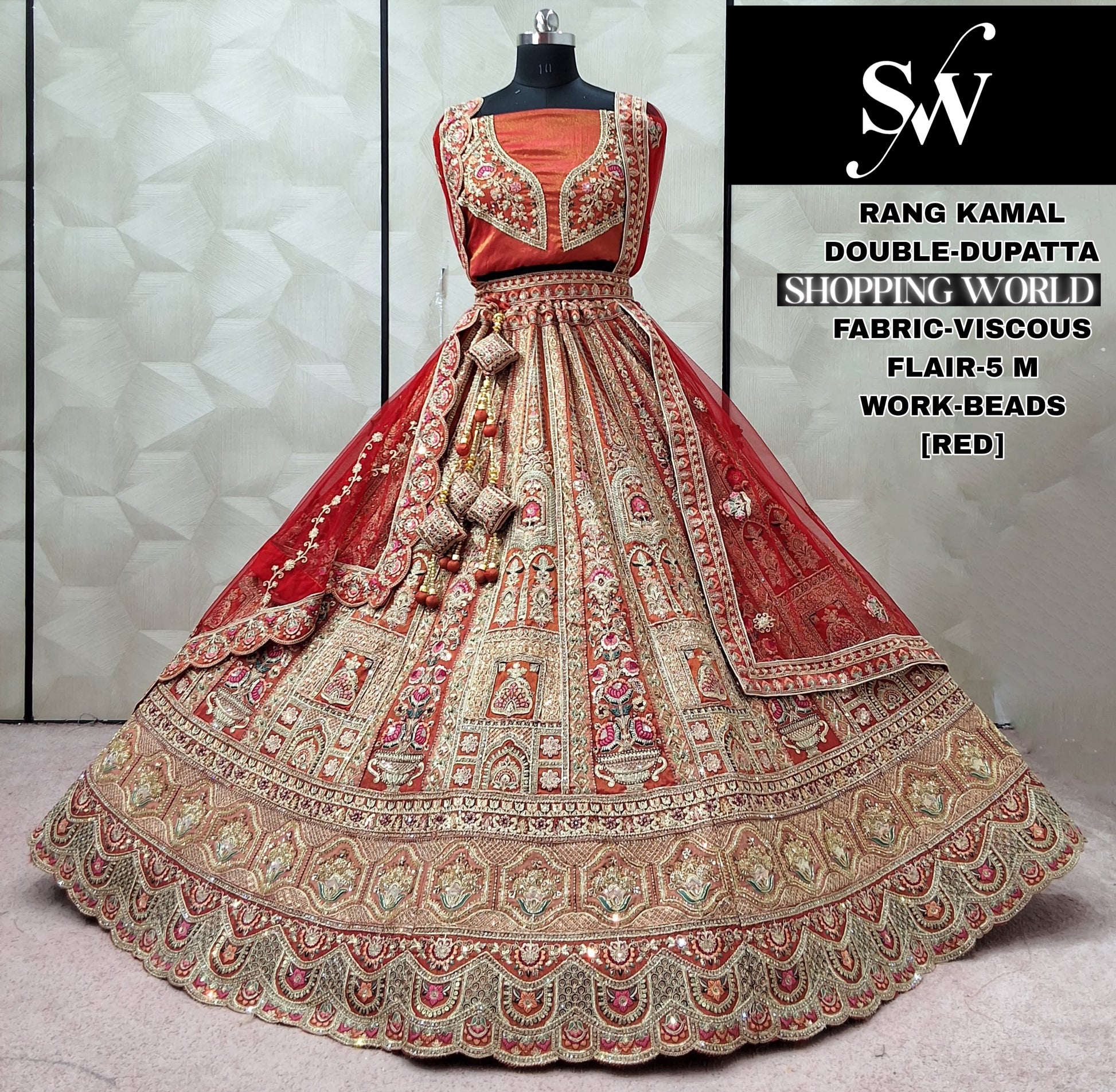 Designer Red Double Dupatta Viscous Bridal Lehenga