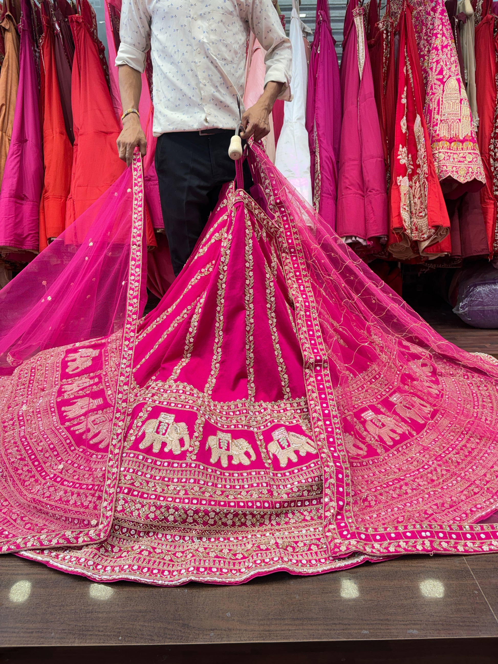 Designer Rani pink Gajraj handwork handmade bridal Lehenga