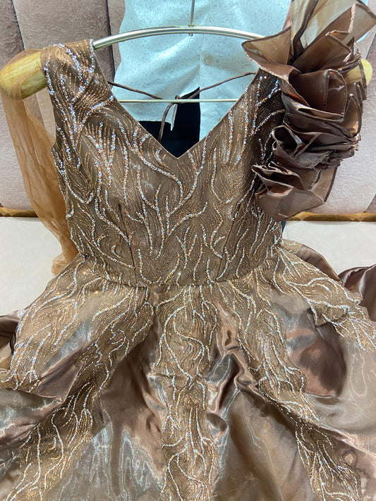 Fabulous brown rust peplum long Dress Farshi Gaharara Dress Special
