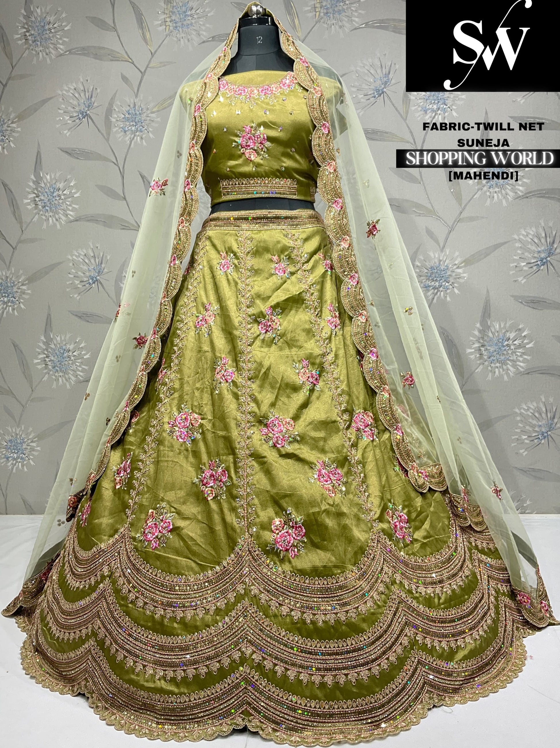 Astonishing mehendi Twill net Lehenga