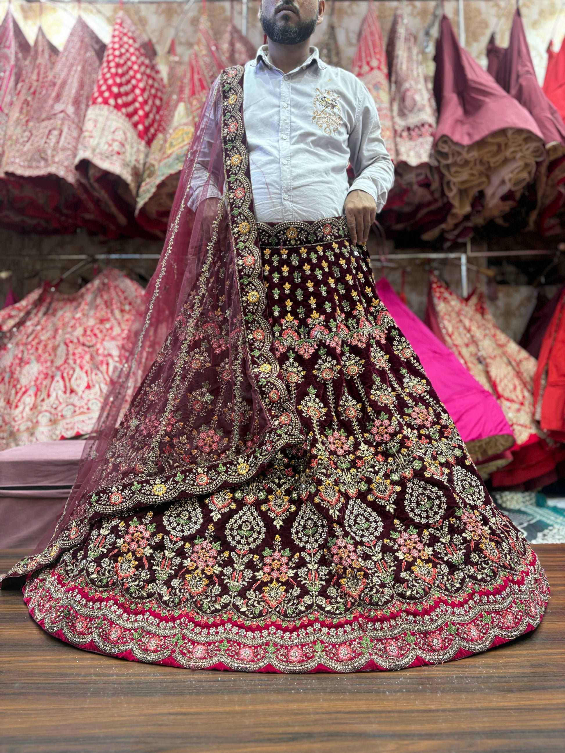 Designer jhumka Maroon bridal lehenga ( happy customer)