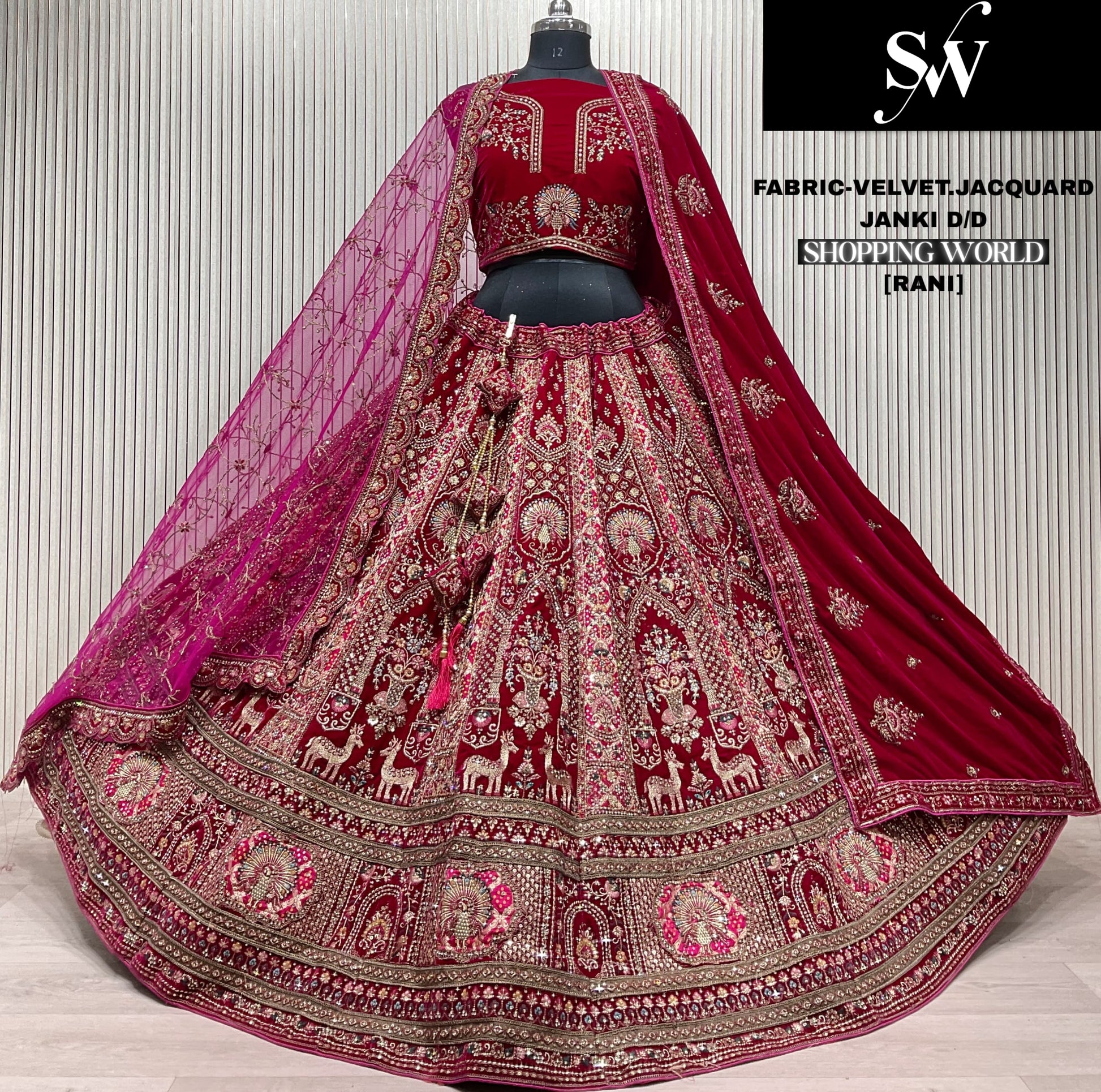 Lavishing Rani pink Double Duptta Velvet jacquard Bridal Lehenga