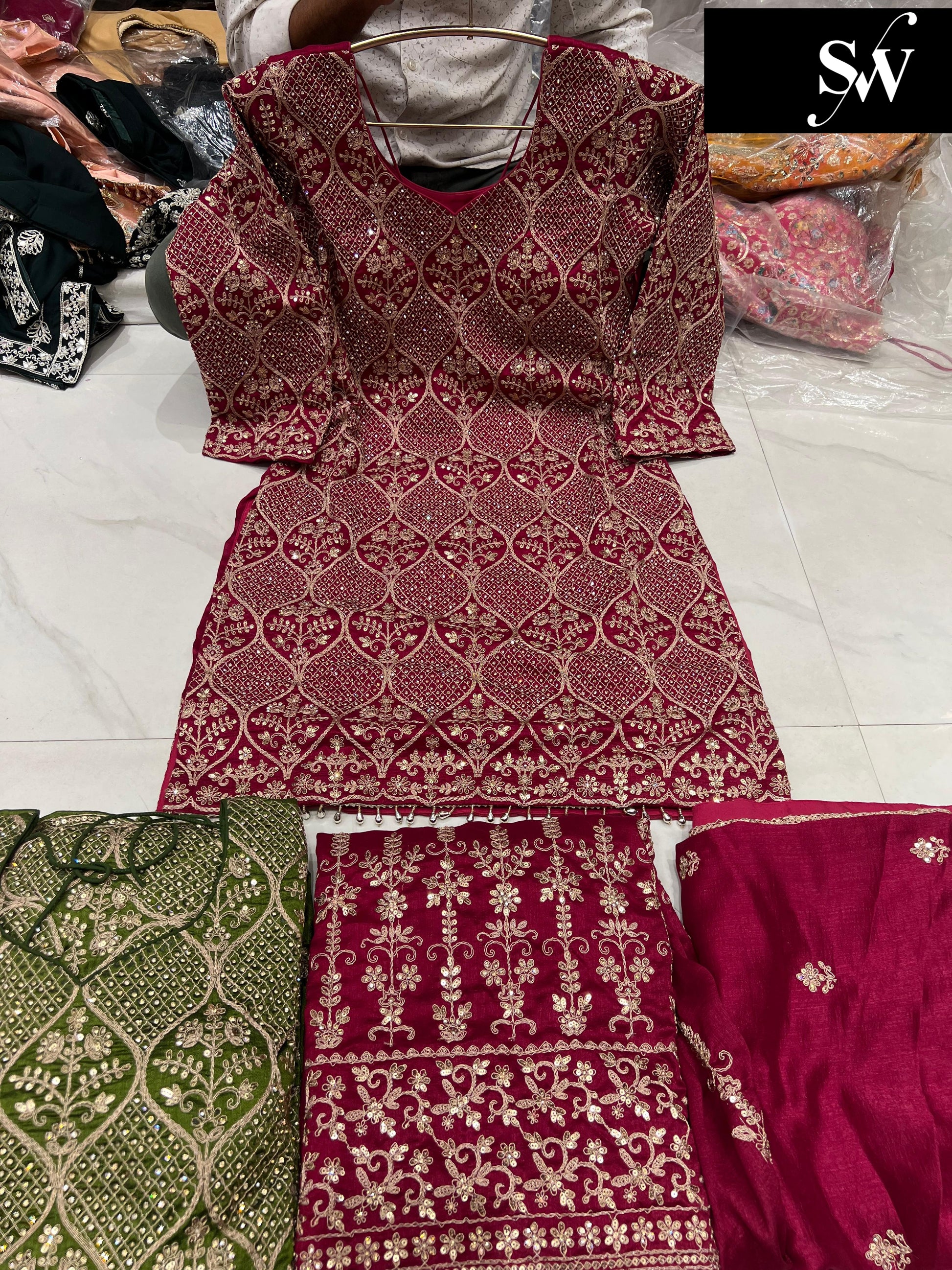 ✔ Intricate Designs: Hand embroidery, zari, sequins, mirror work, digital prints, and churidar materials for a flawless look.