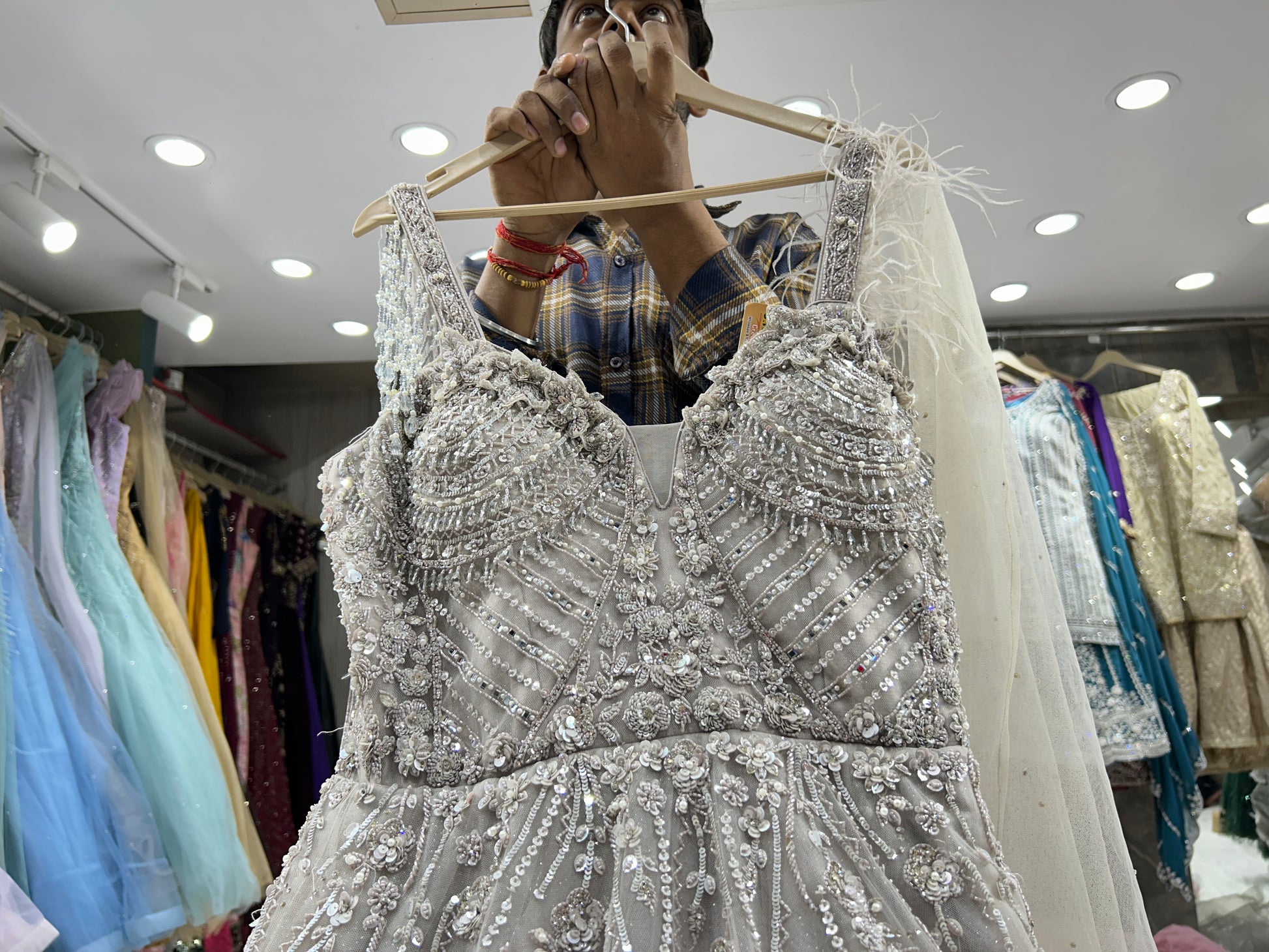 - ₹10,000 – ₹15,000: Glamorous gowns with detailed embroidery and embellishments